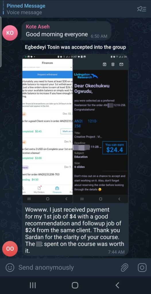 Access to the training, reminders, and learning materials is shared inside the WhatsApp group.